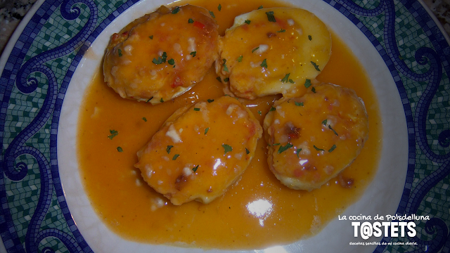 Esta es una receta que me trae buenos recuerdos, ya que era una de mis comidas favoritas cuando era niña. He intentado elaborarla lo más fiel a mis recuerdos, y aunque me han salido unos huevos bastante buenos, no son los mismos que hacia mi madre. Espero que os guste: